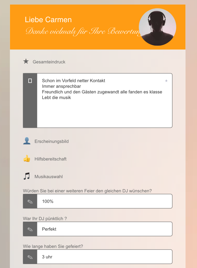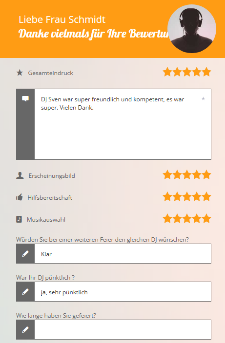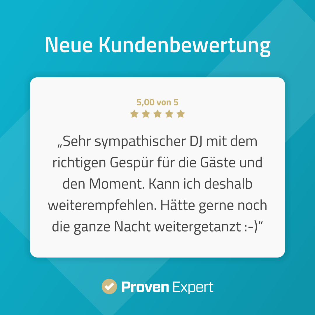 Tauchen Sie ein in die Welt von DJ Sven Bergmann, wo jede Feier zu einem unvergesslichen Erlebnis wird. Meine Kunden schätzen mich als den perfekten DJ für jede Art von Veranstaltung – egal ob glamouröse Hochzeit oder ausgelassener Geburtstag. Ich bin bekannt für meine kommunikative Art, absolute Pünktlichkeit und zuvorkommenden Service. Erleben Sie mit mir Feiern auf höchstem Niveau, begleitet von atemberaubenden Lichteffekten und einer Musikauswahl, die den Moment perfekt trifft.